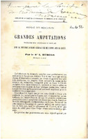 Article sur d'expostion des résultats des grandes amputations pratiquées dans la dernière division chirurgicale de l'hôtel-dieu de Rouen par le docteur normand, Dr L. Duménil. De plus, on retrouve ...