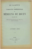 Bulletin l'Association professionnelles des médecins de Rouen de l'année 1900. Dans ces bulletins, nous retrouvons les résumés de chaque séance ayant lieu. Nous y trouvons les noms des membres de l...