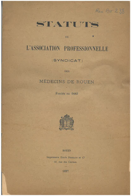 Portail général. "Statuts de l'Association professionnelle (syndicat) des médecins de Rouen." Accessed . https://frea.univ-rouen.fr/s/frea/item/1429.
