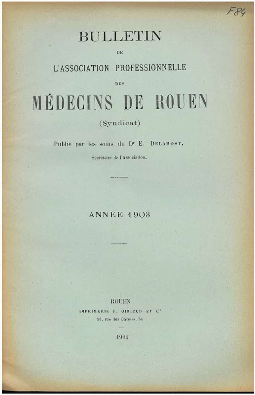 Bulletin de l'association professionnelle des médecines de Rouen (Syndicat) / Année 1903