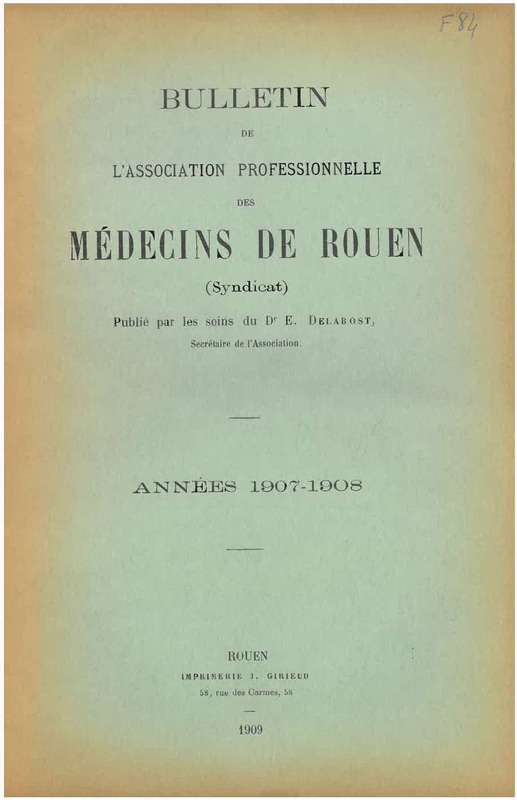 Contenus avec " A une partie : Bulletin de l'association professionnelle des médecines de Rouen (Syndicat) / Année 1907-1908 "