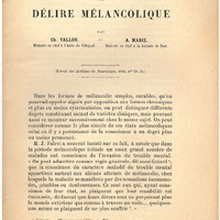 Publication du progrès médical sur le délire mélancolique par Charles Vallon, medecin en chef à l...